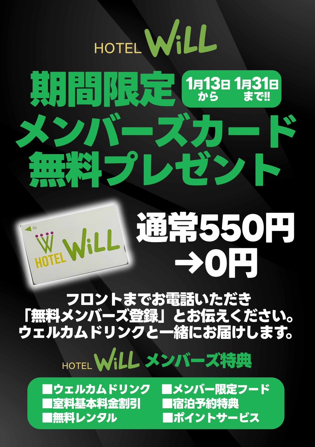 ただいま期間限定、1月13日〜31日までメンバーズカード無料プレゼント!
